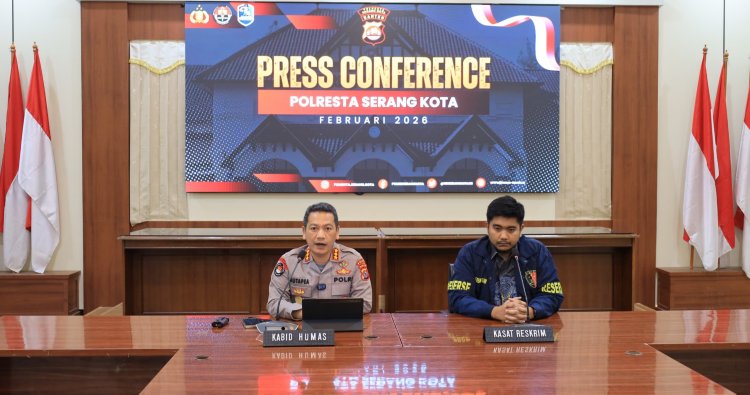 Serang - Menanggapi video yang viral di media sosial, Polresta Serang Kota menggelar Press Conference mengenai penanganan perkara yang dilakukan oleh penyidik Satreskrim Polresta Serang Kota. Kegiatan tersebut dilaksanakan di Aula Wicaksana Laghawa Polresta Serang Kota pada Jumat (20/02).